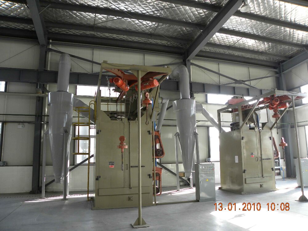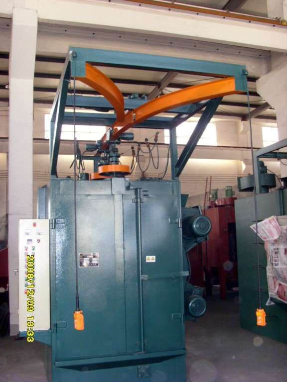 機器設計構思新穎,使用維修方便。吊鉤具有升降、行走、室內旋轉的功能。本機具有故障自動(dòng)檢測裝置,采用先進(jìn)的瑞士+GF+制作技術(shù),從而使本機具有結構先進(jìn),設計合理,運行可靠,生產(chǎn)效率高等特點(diǎn)??筛鶕煌ぜ拇笮?,決定所開(kāi)啟的拋丸器數目。采用吊鉤式拋丸清理方式,可大大提高勞動(dòng)生產(chǎn)率。
